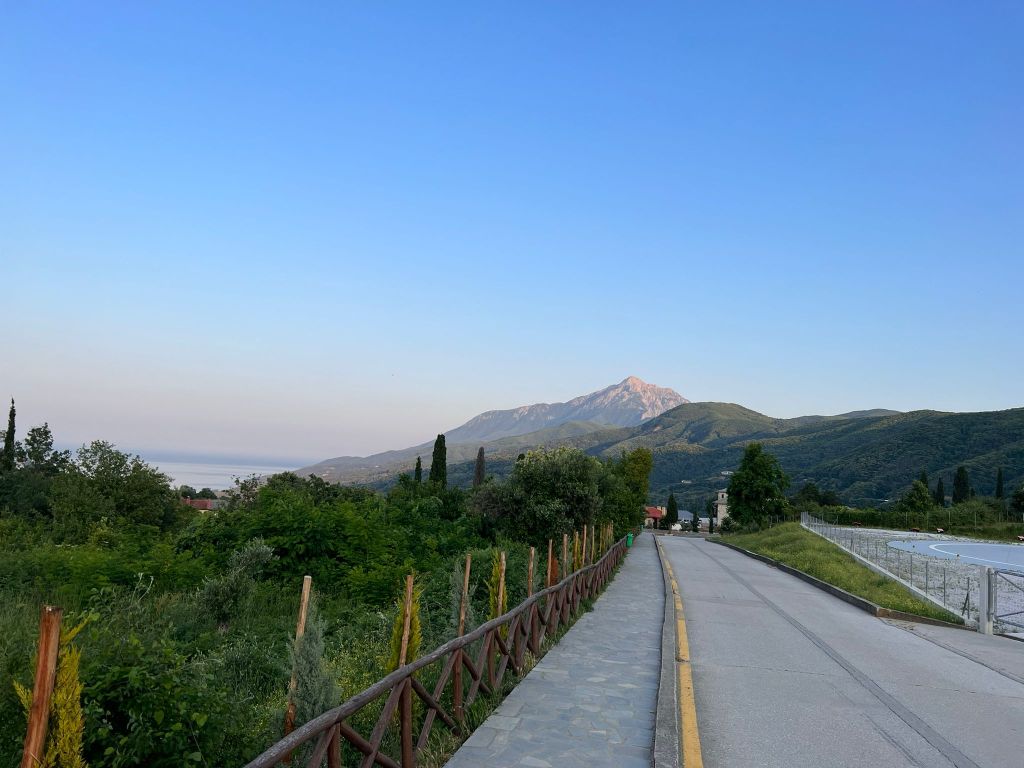 Pentru mine a fost cel de-al doilea drum în Sfântul Munte. Am călătorit de la București, cu mașina, pe un drum ce mi-a părut mult mai scurt ca prima oară, dat fiind faptul că acum nu am mai fost șofer. Pe drum, entuziasmul și evadarea din cotidian m-a făcut totuși să mă simt ca și cum aș fi fost victima unui jet de gaz ilariant. M-am simțit vinovat uneori, însă am avut binecuvântarea prezenței unor frați foarte îngăduitori. Am plecat în jur de ora 5:30 din București (ridicarea ultimilor oameni printre care și eu) și am fost în Ouranopoli, la cazare, în jur de ora 20:00.