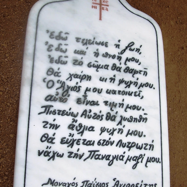 Când s-a făcut ora 17:00 fix portarul a avut grijă ca fiecare mașină să intre în ordinea în care a sosit. Am urcat drumul până sus și am parcat mașina pe esplanada din fața Mânăstirii. Ne-am îndreptat spre mormântul Sfântului Paisie. Ce loc frumos, ce liniște. Fiecare își așteaptă rândul și se închină cu evlavie la crucea și mormântul Sfântului, unde stă scris următorul mesaj: